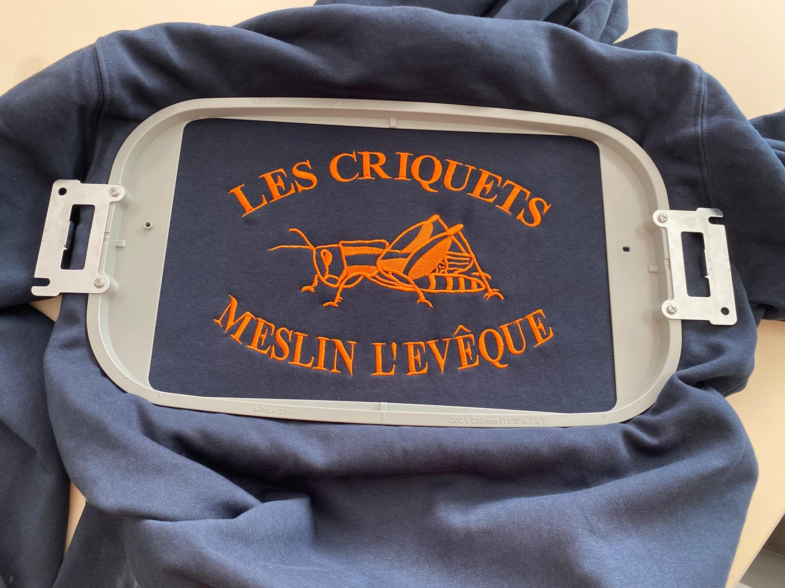 Fourniture des sweats et polos + broderies pour les criquets de Meslin. Merci à Anthonin Brocq pour cette commande et celle de la balle pelote de Meslin.